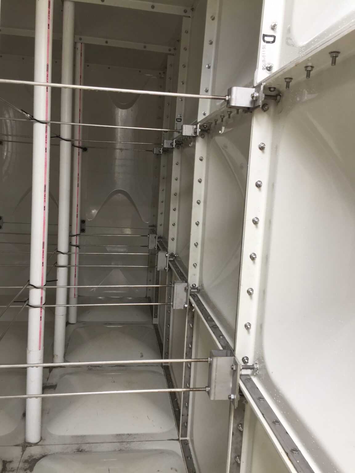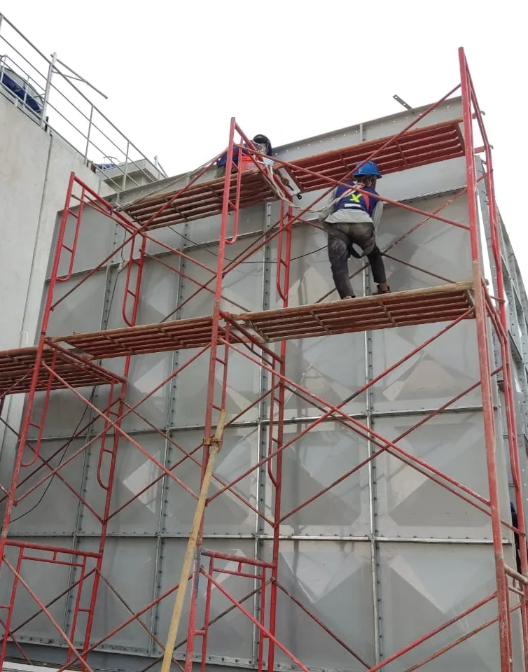 Tangki air SMC kami fleksibel, bisa dipindahkan dan dipasang kembali sesuai kebutuhan sedangkan tangki air FRP lokal tidak bisa. Hal ini karena metode konstruksi tangki SMC adalah metode bolting dan menggunakan bahan penyegel (sealant). Tangki SMC kami dapat dipindahkan ke mana saja dan dipasang kembali hanya dengan mengganti bahan penyegel setelah dilepaskan.